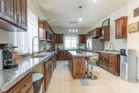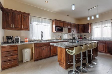 Estacionamiento para para dos autos, ante comedor, Sala comedor, cocina integral con isla en medio, acabados de granito.
